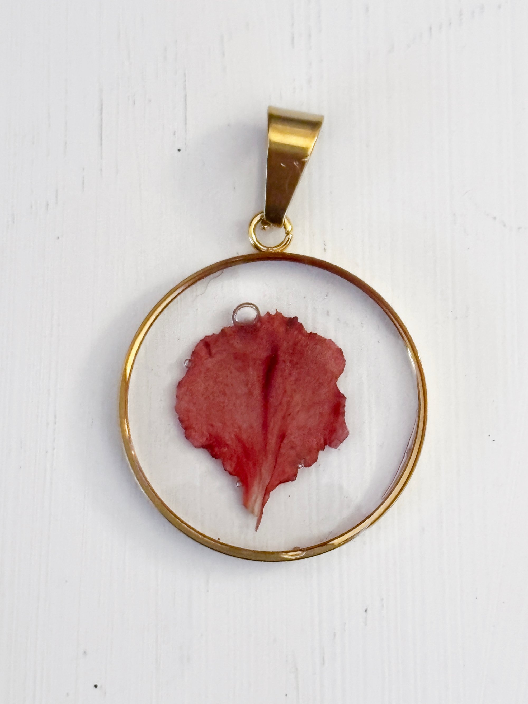 Handcrafted with a single crimson petal, preserved in resin for a bold, simple design that highlights natural texture and color.